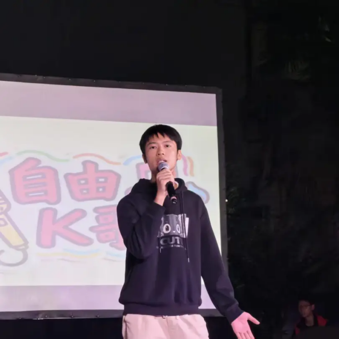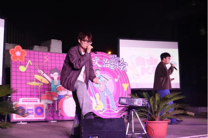 下半场自由K歌环节开启后,现场热度丝毫不减。同学们一改往日的拘谨,争相举手报名登台:有人点唱童年动画插曲,熟悉的旋律勾起全场集体回忆;有人弹唱小众民谣小调,温柔嗓音让现场陷入静谧共鸣;还有人选择热血流行曲,带动台下一起挥手跟唱。没有精心编排的舞台,却有最鲜活的青春表达——同学们握着话筒放声歌唱,在聚光灯下舒展姿态,把对生活的热爱、对伙伴的情谊,都融进了这自由畅快的旋律里。