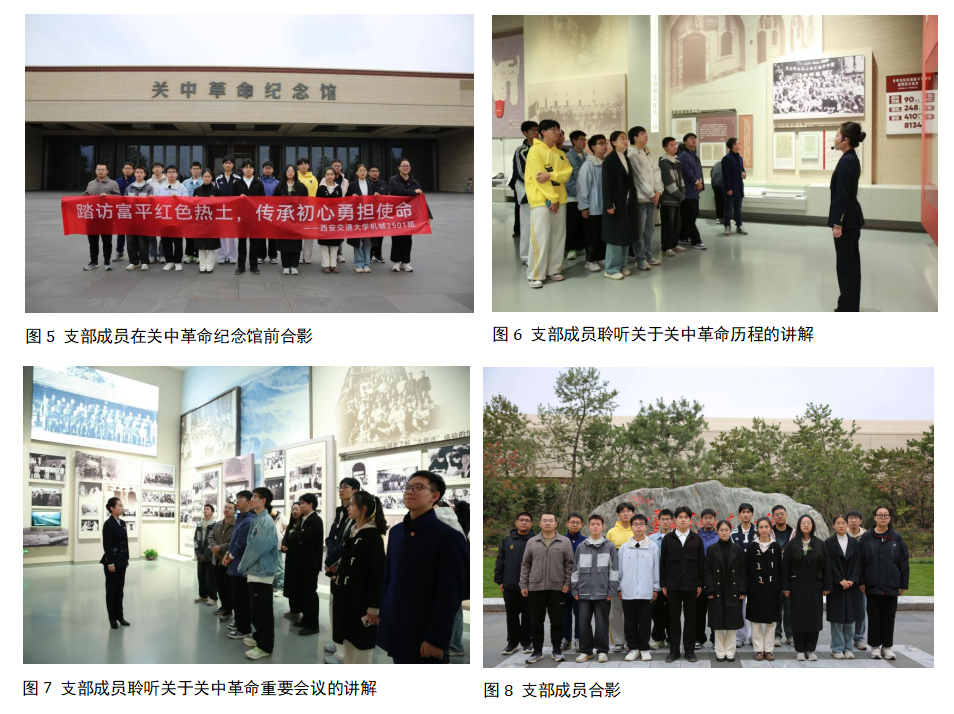 为厚植爱国主义情怀,传承红色基因,体悟西迁精神,2025年10月19日,西安交通大学机械2501团支部联合文治书院团委、富平县团委,以“赓续红色血脉,体悟西迁精神”为主题,组织支部成员以及团委骨干前往富平县开展红色研学活动。