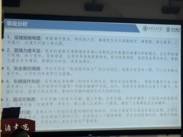 随后,李晶老师细致梳理了校园典型交通事故类型,包括忽视路况、车速过快、“鬼探头”等,并分析事故成因,主要涉及设施短板、管理力度不足、师生安全意识薄弱及路况不熟等方面。