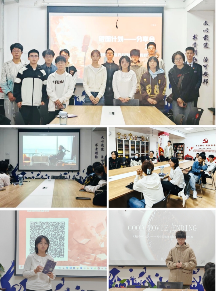 活动现场暖意融融,4位分享者带着精心准备的内容依次登台,用不同的故事与思考点亮全场,引发阵阵共鸣。杨郭顺同学以经典电影《触不可及》为切入点,通过细腻解读影片中跨越阶层与差异的真挚情谊,让在场学子重温“理解与陪伴”的温暖力量;唐吉祥同学则聚焦励志电影《千钧一发》,深入剖析影片中主角在基因歧视的困境下,凭借坚定信念突破局限、追逐梦想的内核,让“坚持终能改写命运”的信念深深扎根在听众心中;陈思润同学带来书籍《献给阿尔吉侬的花束》的分享,结合自身成长经历探讨“认知升级与自我接纳”的话题,独特的视角打破了传统解读边界,为大家提供了看待“成长”的新维度;李夏丽同学则精选史铁生散文中的经典语录,用文字中蕴含的“直面苦难、热爱生活”的勇气,为现场注入温暖而坚定的力量。