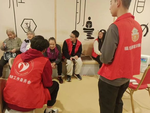 在服务过程中,志愿者们注重从细节入手,切实解决老人的实际困难。当发现有老人需要泡脚解乏时,张临桐同学主动准备好热水送到老人面前;面对爱好台球却疲于摆球的大爷,吴文炜同学耐心协助摆球;针对老人遇到的手机操作难题,魏小雯同学逐一帮助清理垃圾软件、调整手机设置。志愿者们将关怀融入具体行动,用热情周到的服务赢得了老人们的交口称赞,展现了青年一代的责任与担当。