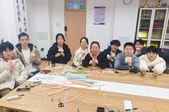 活动现场氛围热烈温馨,在负责人的耐心指导下,同学们从基础缠绕到花瓣塑形,一步步将色彩缤纷的扭扭棒幻化为立体灵动的“无尽夏”绣球花。大家互相交流技巧、分享创意,欢声笑语不断,亲手打造出或清新淡雅、或明艳活泼的专属作品,收获满满成就感。